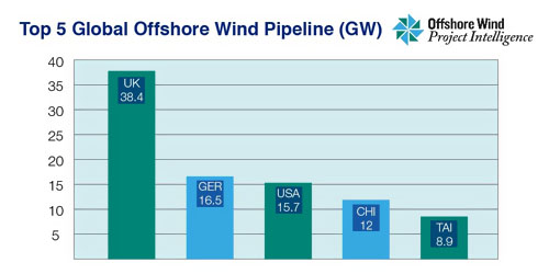 在歐洲以外,美國敏捷興起成為第三大海優(yōu)勢能商場,超越中國大陸的12 GW和中國臺灣的8.9 GW管道項目,到達15.7吉瓦。正如現(xiàn)已廣泛報導(dǎo)的那樣,美國一直在推進海優(yōu)勢能項目的開展,由東海岸各州擬定新政策建議并向開發(fā)商頒發(fā)很多項目。